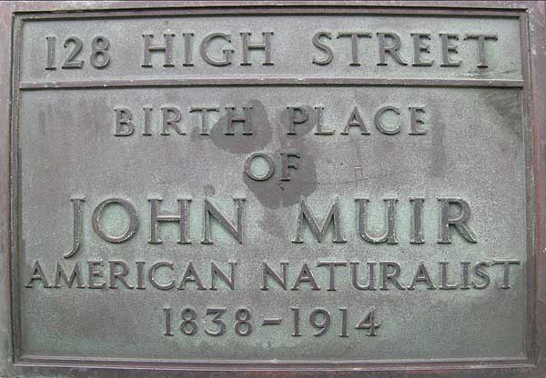 plaque) of John Muir, naturalist, author, and early advocate of preservation of wilderness in the United States. One of the most well know hiking trails in the United States, the 211 mile John Muir Trail, was named in his honour.