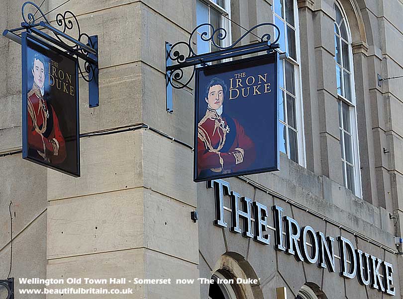 picture) in the town of Wellington, Somerset. Duke of Wellington is a hereditary title, derived from the Somerset town and was created for Arthur Wellesley, 1st Marquess of Wellington. The wall plaque (see