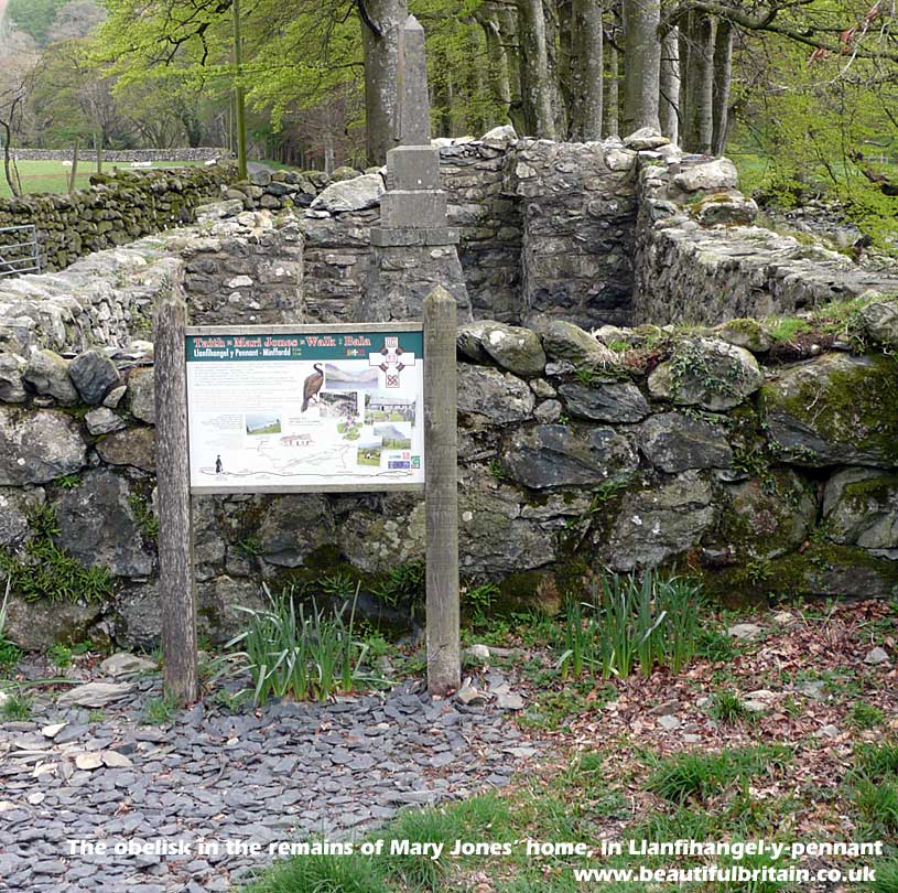 picture) in Llanfihangel-y-pennant, near Dolgellau, of Mary Jones. At the age of 15 she walked twenty-six miles barefoot across the