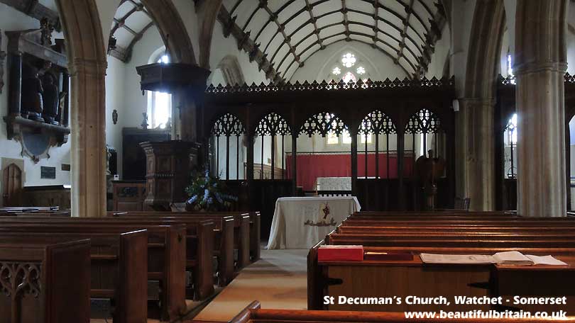 King Henry II. The disgraced knights and their families did a number of penances, one of which was to build a Chantry chapel in the centre of Watchet and the building of St Decuman’s Church (see