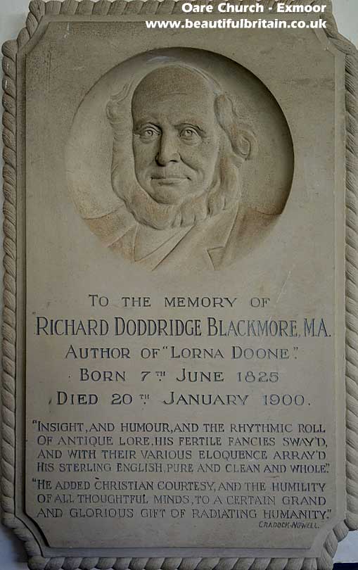 1900 The death of Richard Doddridge Blackmore (known as R. D. Blackmore). In his popular novel Lorna Doone, Lorna is shot at Oare Church (see