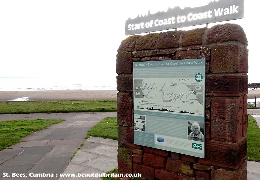 picture) in nearby Buttermere Church. Wainwright's Coast to Coast Walk, starts here at St. Bees in Cumbria (see