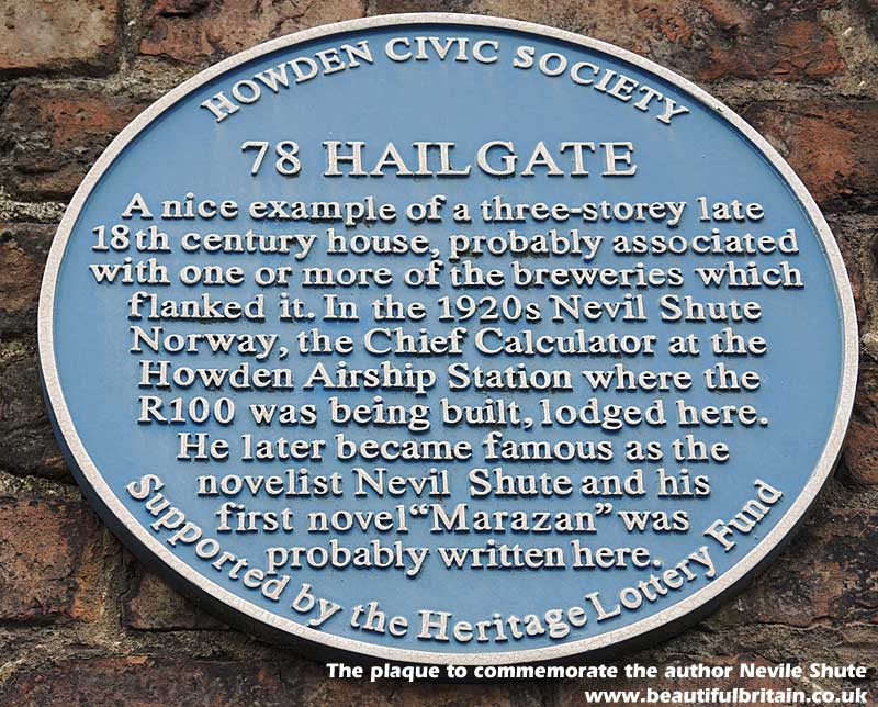 1899 The birth of the author Nevil Shute. Before becoming famous as an author, he was part of the aeronautical engineering team that created the R100 airship. He worked at RNAS Howden, East Yorkshire, under Barnes Wallis and lived at this house (see