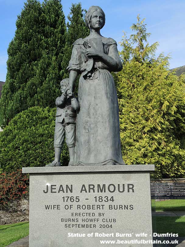 1834 The death of Jean Armour, wife of the poet Robert Burns. See her statue in Dumfries. They had nine children, three of whom survived into adulthood. She was buried beside her famous husband in the mausoleum (see