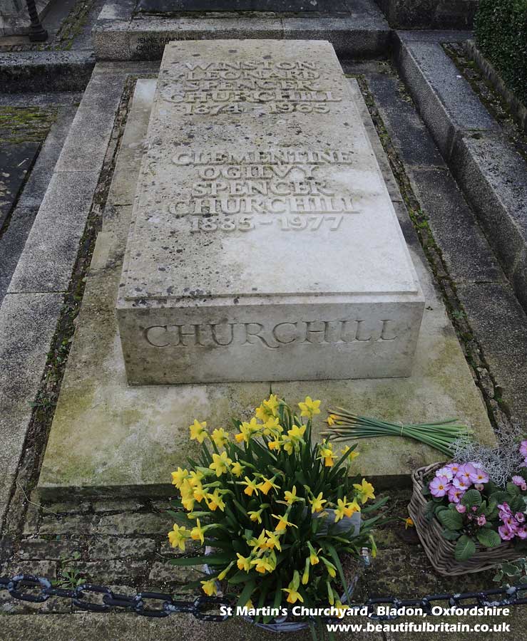 1852. After his state funeral service, his body was taken by train to Bladon, Oxfordshire and there the private burial took place, conducted by the rector. By contrast with the earlier service, only relatives and close friends were present. The grave of Winston Churchill is in Bladon churchyerd (see