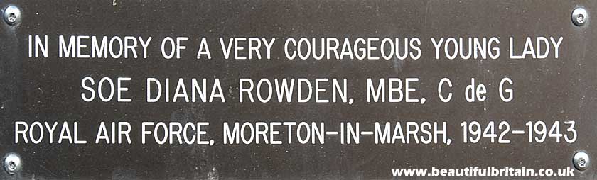 1944 The death of Diana Hope Rowden. She was a Special Operations Executive (SOE) member who was executed, by lethal injection, in Natzweiler concentration camp after a new agent turned out to be a false agent planted by the Germans. She was awarded the French honour of Croix de Guerre 1939-1945. This commemorative plaque (see picture) is in Moreton-in-Marsh, where she had been promoted to Section officer in July 1942.