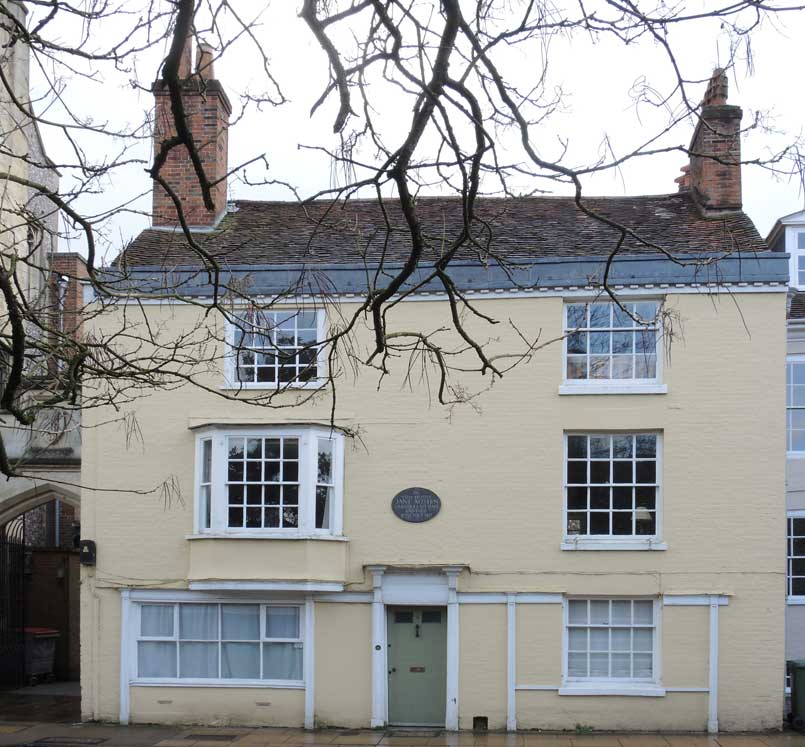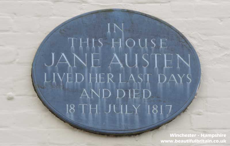 close up picture) of the commemorative plaque. She was buried at Winchester Cathedral. See
