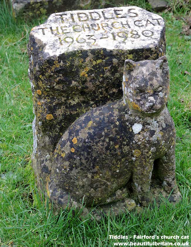 monumental brass), a wealthy wool merchant completely rebuilt the church at his own expense. Unusually, the churchyard includes a stone memorial to Tiddles (see