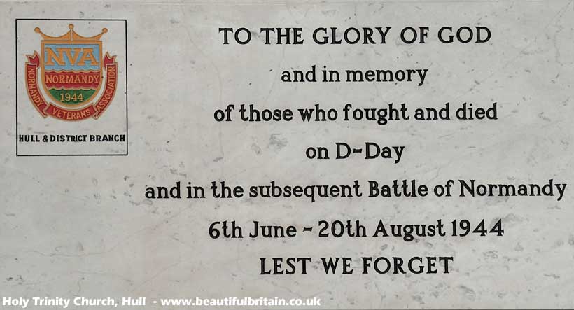 memorial plaque at Hull's Holy Trinity Church and the Commandos' Memorial (see