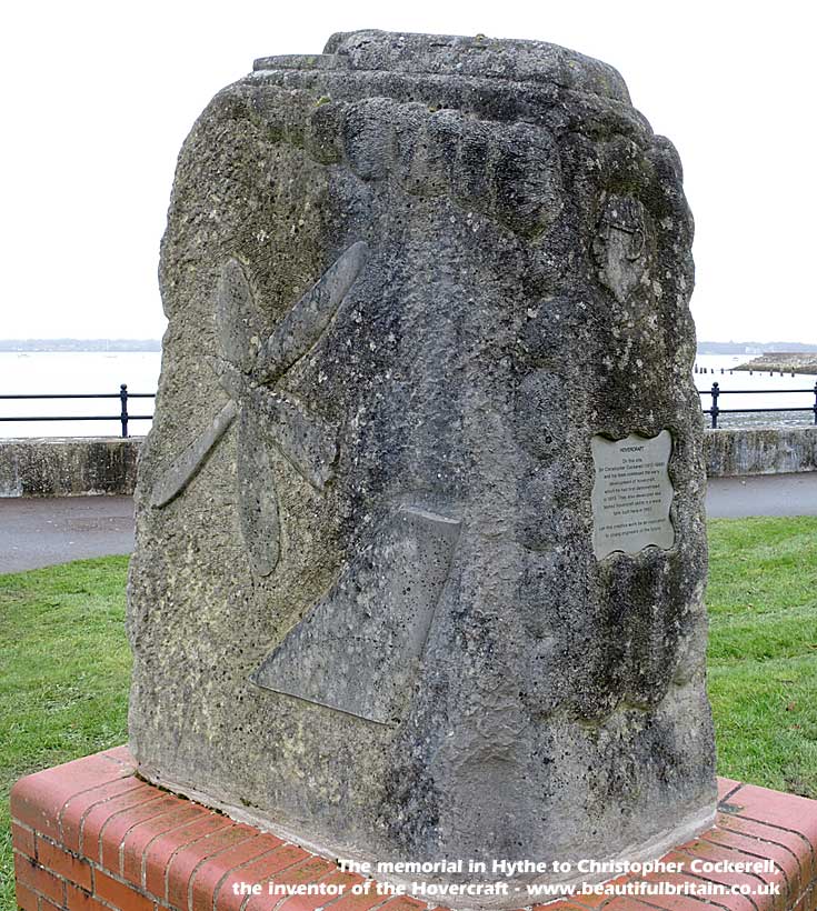 picture of a hovercraft at Ryde and this stone memorial