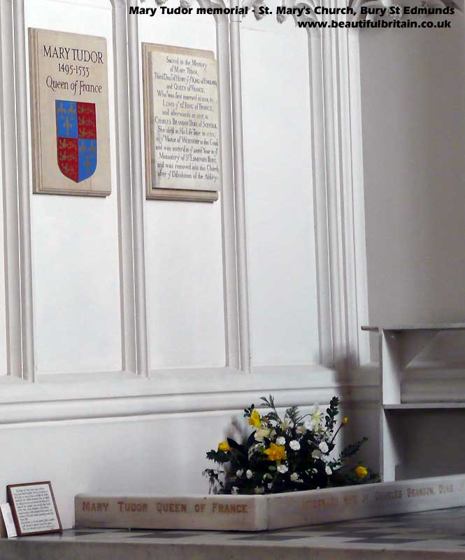 at Bury St Edmunds, Suffolk, but her body was moved to nearby St. Mary's