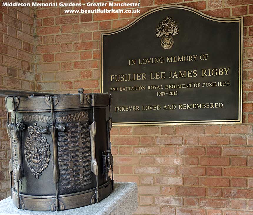 picture) commemorating Lee Rigby were unveiled on 29th  March 2015 at the Middleton Memorial Gardens, in his home town of Middleton, Greater Manchester.