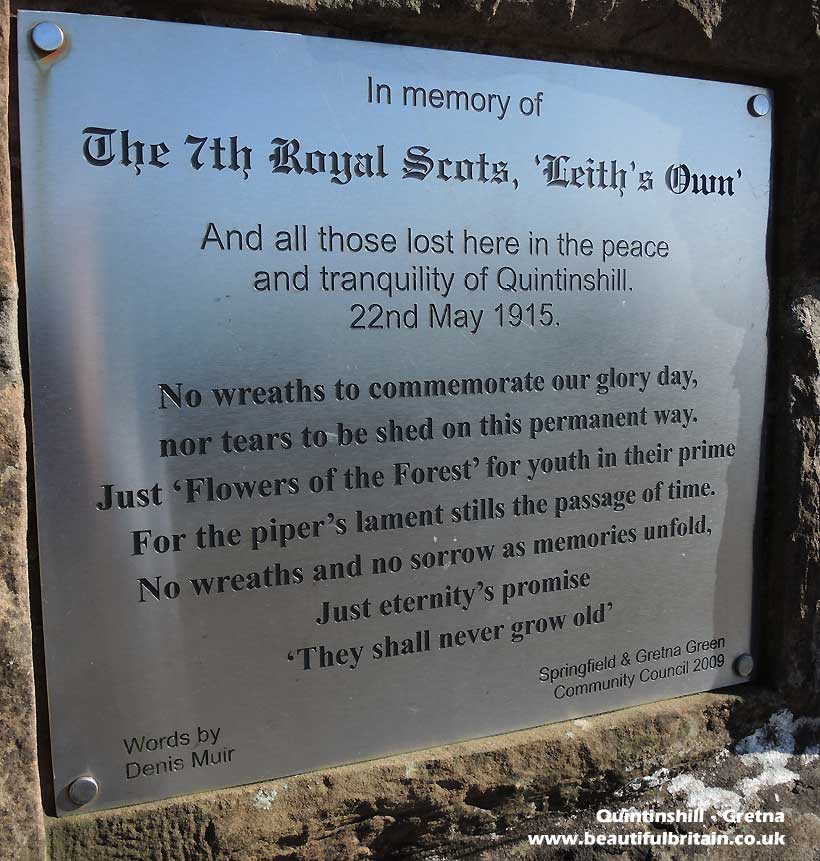 picture) and involved a special troop train carrying a Royal Scots battalion, two goods trains, a local train and an express from London Euston. The cause of the accident was poor working practices on the part of the two signalmen involved, which resulted in their imprisonment for culpable homicide. This commemorative plaque (see