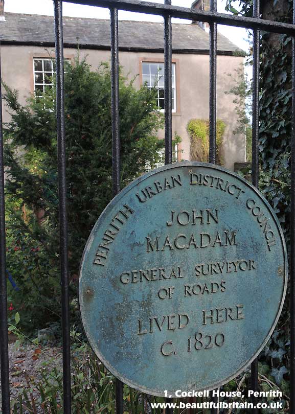 1836 The death of John Loudon McAdam. He invented a new process, "macadamisation", for building roads with a smooth hard surface, using controlled materials. Modern road construction still reflects McAdam's influence. He had extensive responsibilities in the north of England including the road from Penrith to Greta Bridge (A66), the road from Penrith to Cockermouth (also the A66) and the road from Penrith to Carlisle (A6). Whilst in the area he lived here - 1, Cockell House, Penrith (see