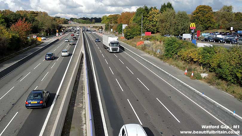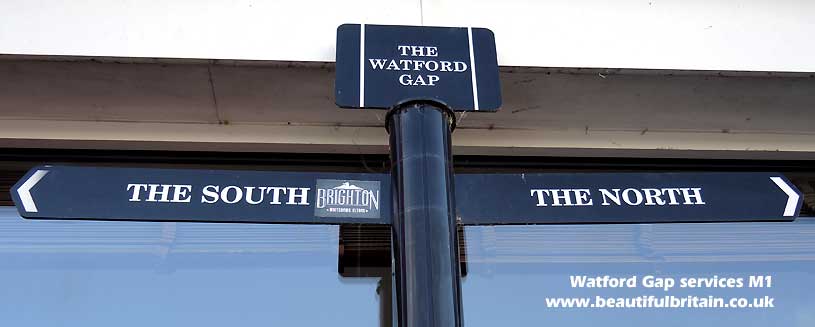 picture) the oldest motorway services in Britain. The M1 - between Junction 5 (Watford) and Junction 18 (Crick/Rugby) opened on the same day. Watford Gap has long been hailed as the unofficial cut-off point between the two parts of the country, (see