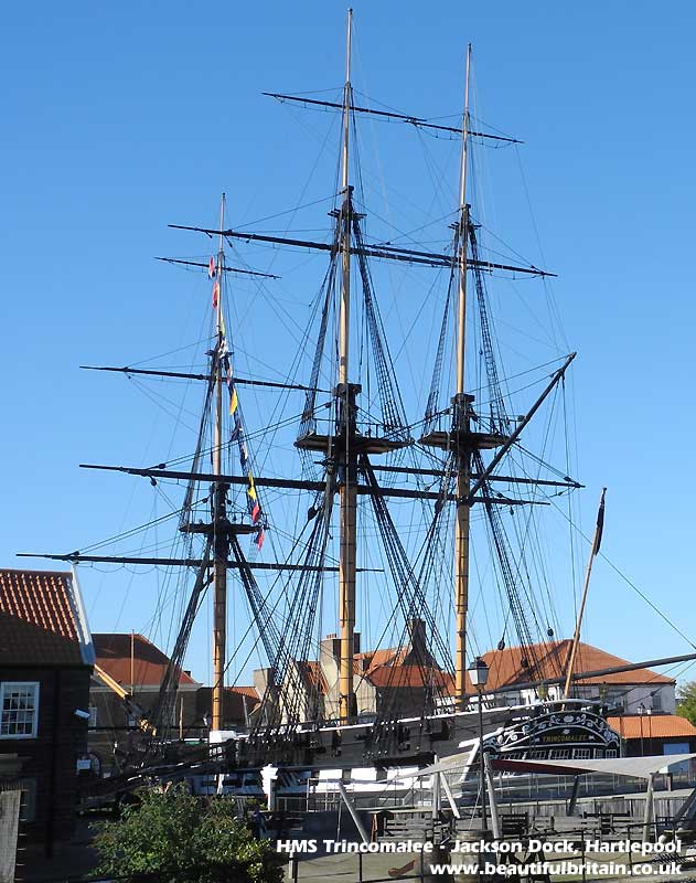 picture. She is berthed at Jackson Dock, Hartlepool. Between July 2015 and July 2017, HMS Trincomalee had the distinction of being "The oldest warship afloat anywhere in the world"  after the USS Constitution (launched in 1797) was moved to dry dock for a major restoration.