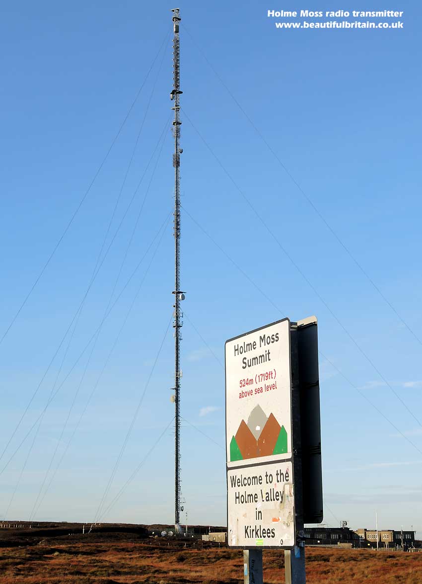 picture) one of the highest in the country, reaching 228m above ground and 524m above sea level. In 1951 it provided BBC television (the only TV programme at the time)  but now transmits VHF, FM and DAB radio to Derbyshire, Manchester and West Yorkshire, with coverage of around 13.5 million people.