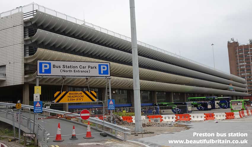 1969 The opening of Preston Bus Station, one of the largest in Western Europe. Threatened with demolition since the year 2000, campaigns and applications were made numerous times to save the building. It featured on the 2012 World Monument Fund's list of sites at risk. Nevertheless, on 7th December 2012, Preston City Council announced that the bus station would be demolished, but in 2013 it was saved when English Heritage granted it the status of a Grade II listed building. See