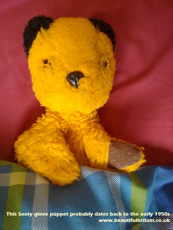 1949 The glove puppet Sooty, (see picture) with Harry Corbett, made his first