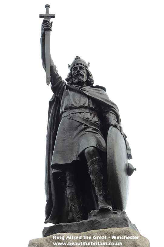 Danes and formed England's first navy. His son, Edward the Elder became King. Winchester was Alfred's capital, and he developed the town and to keep it safe from attack. This statue of him (see