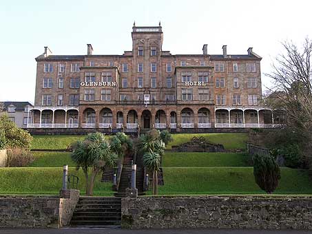 The Glenburn Hotel (a Shearings Hotel) is the island's largest and affords panoramic views over Rothesay Bay. It blends in well with Rothesay's many gracious 19th century buildings. Canada Hill (follow the sign's for Rothesay's golf course) gives stunning views over the Kyles of Bute and the freshwater Loch Fad that almost cuts the island in two. Rothesay has a number of Zavaroni cafes. The town was the birthplace of Lena Zavaroni, a child star who found fame after winning TVs Opportunity Knocks in 1973 but died tragically from Anorexia Nervosa in 1999.