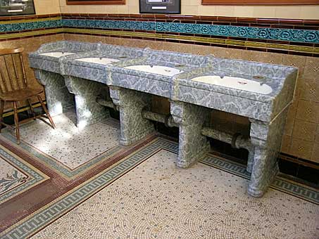 There are two ways to get to the Isle of Bute from the mainland, either by ferry or ...... by ferry! The ferry crossing from Wemyss Bay to Rothesay takes 45 minutes and is a 'proper' sea crossing. The ferry from Colintraive on the mainland to Rhubodach (Rubber duck?) is hardly a crossing at all and takes barely 5 minutes. It's so narrow that at one time cattle were made to swim across from the mainland. When you visit Rothesay, once a spa town, you must visit the gents' Victorian toilets on Rothesay Pier, even if you don't want to go! Small admission charge. They have been described as 'jewels in the sanitarian's crown' and 'the most beautiful in the world'. Ladies can be given a guided tour at quiet times. With the exception of the cubicle cisterns all are original fitments dating from 1899. One day all public toilets will be like this. Maybe not!