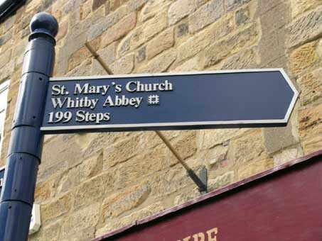 Pointing the way to the 199 steps leading to St. Mary's Church |