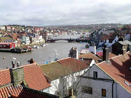Whitby is divided in two by the River Esk. St. Mary's Church and Whitby Abbey are on the eastern headland and are visible through the whale arch in the picture sequence at the top of this page. Although the Abbey is accessible by road, the able bodied should experience climbing the 199 steps to the summit! As you return to the town you can always hear those on the ascent count each step, just to make sure that there really are 199. These steps have associations with Bram Stoker, as he based much of his Dracula novel here whilst staying in Whitby in 1890. Charles Lutwidge Dodgson (better know as Lewis Carroll) also set some of his work and poems in Whitby, as he was a regular visitor. The Abbey's history dates back to AD675 when St. Hilda founded a monastery. The present structure is from 1078 and is now in the care of English Heritage.