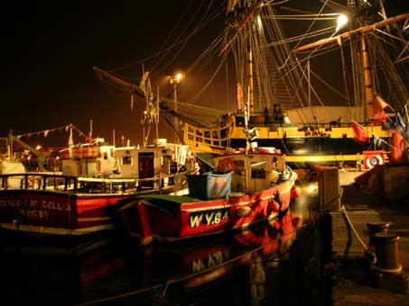 The Grand Turk and fishing boats in Whitby harbour |