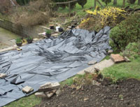 Now for the liner. Make sure that the weather is relatively warm as the liner will be more flexible. Lay it centrally across, not inside, the pond. |