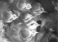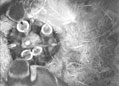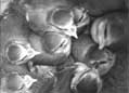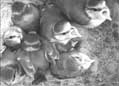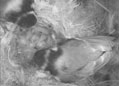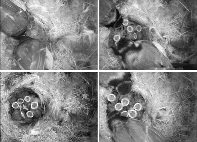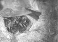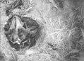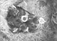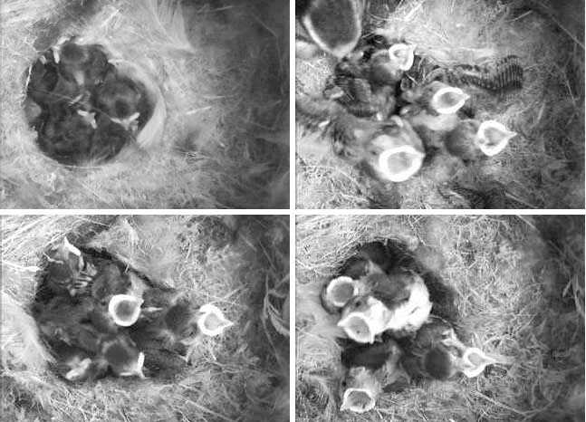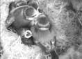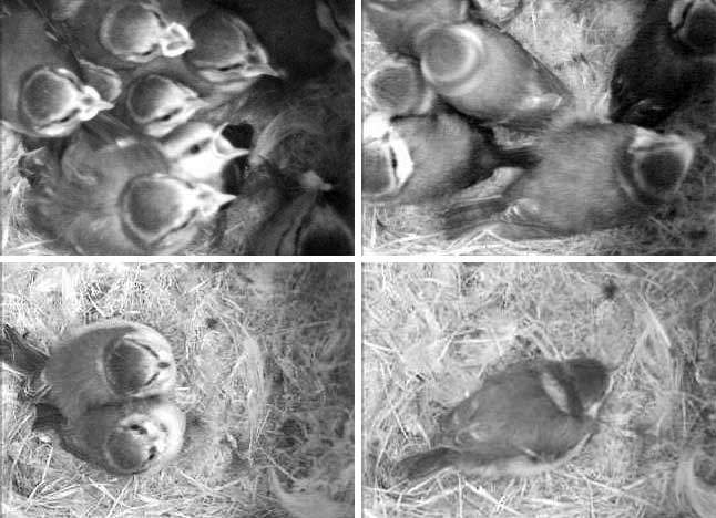 The 'gapes' are still very prominent in picture 1. In pictures 2, 3 and 4 above the chicks' eyes are open and their wings are developing. Click any of the pictures for a better view. |